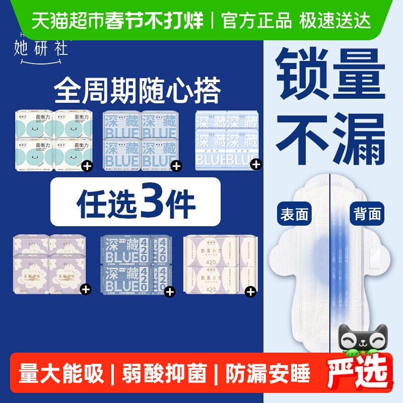 洗护清洁剂/卫生巾/纸/香薰 她研社卫生巾安睡裤爆款组合全周期全系列随心配