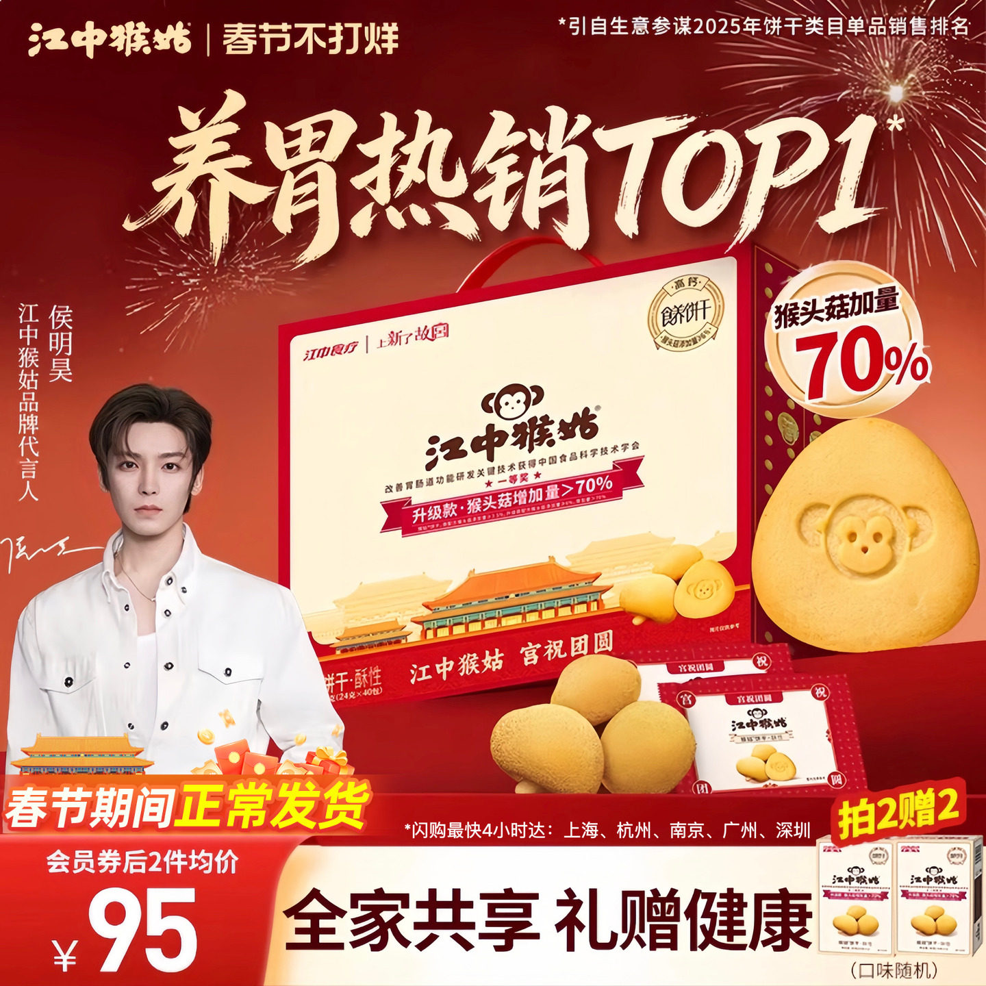 零食/坚果/特产 【年货礼盒】江中猴姑饼干酥性20天装猴头菇养胃零食侯明昊同款