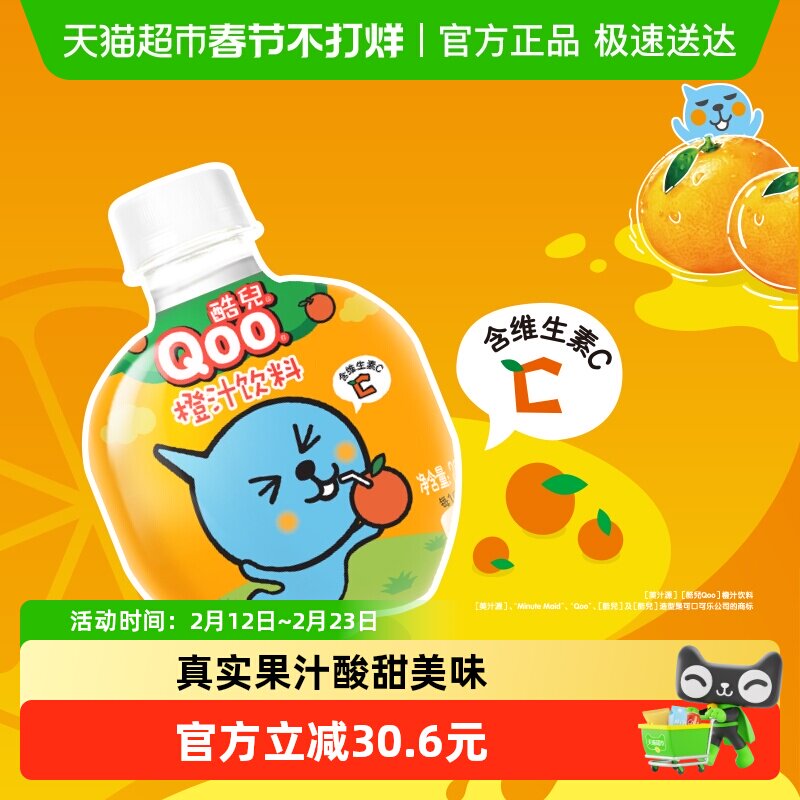 咖啡/麦片/冲饮 美汁源 酷儿 Qoo果味/果汁饮料橙汁饮料260ml*12瓶*2箱