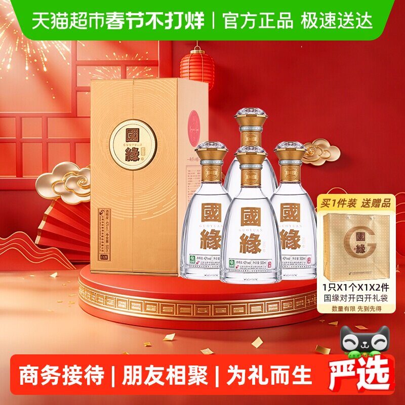 酒类 今世缘国缘对开42度500ml*4瓶白酒 纯粮酿造商务宴请送礼酒水
