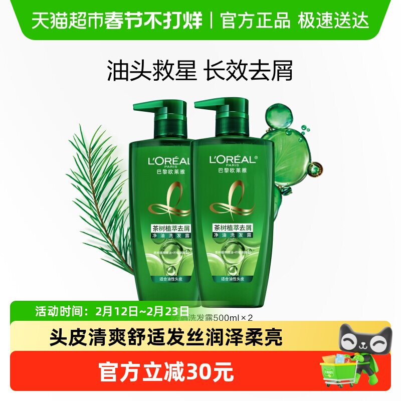 美发护发/假发 L'oreal/欧莱雅茶树植萃控油去屑洗发水油性发质植物养头皮清爽
