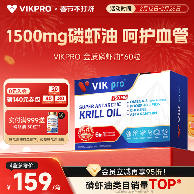 保健食品/膳食营养补充食品 【百亿补贴】德国VIKpro纯南极磷虾油1500mg鱼油升级omega3中老年