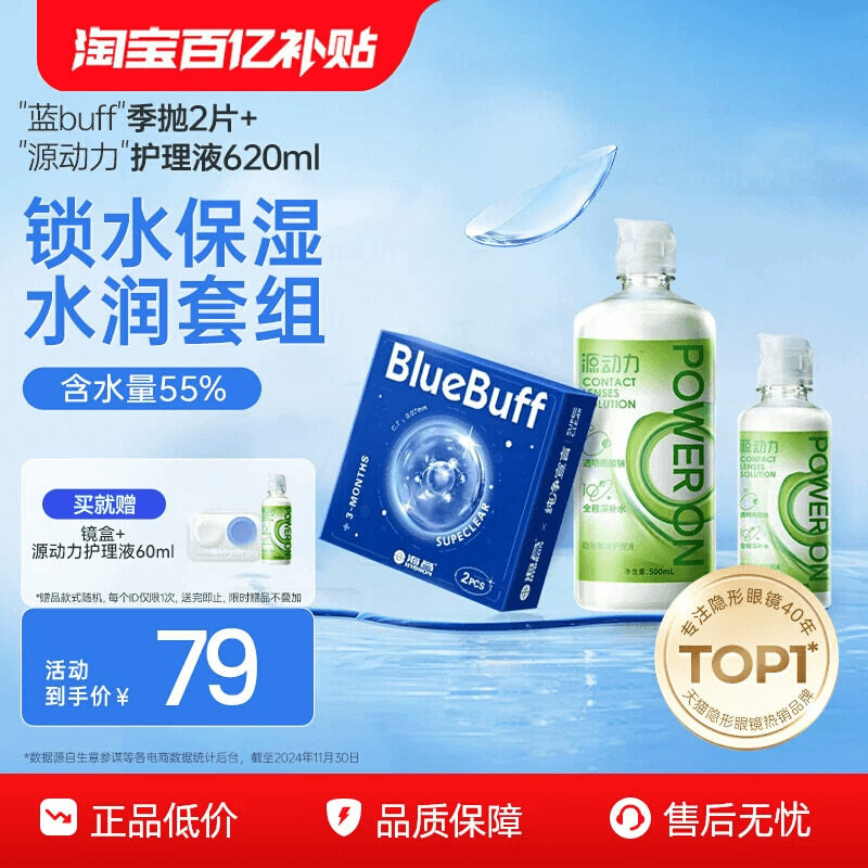 隐形眼镜/护理液 【百亿补贴】海昌蓝buff季抛2片近视隐形眼镜+护理液620ml套组