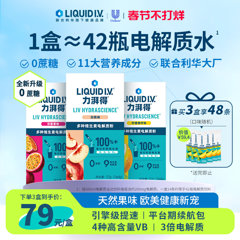 咖啡/麦片/冲饮 【开业钜惠】LiquidIV电解质冲剂liv小燃条电解质粉0蔗糖补水维c