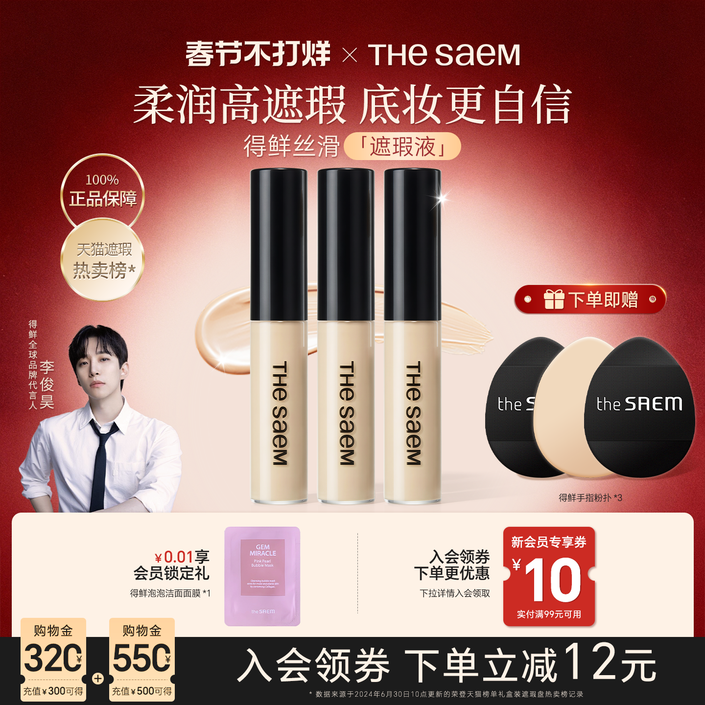 彩妆/香水/美妆工具 【3支】thesaem得鲜遮瑕液笔膏棒遮盖黑眼圈斑点痘痘提亮泪沟干皮