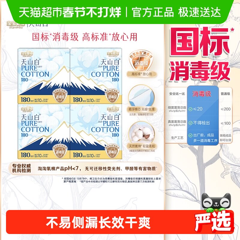 洗护清洁剂/卫生巾/纸/香薰 【下拉详情更优惠】淘淘氧棉天山白消毒级纯棉卫生巾日夜组合迷你