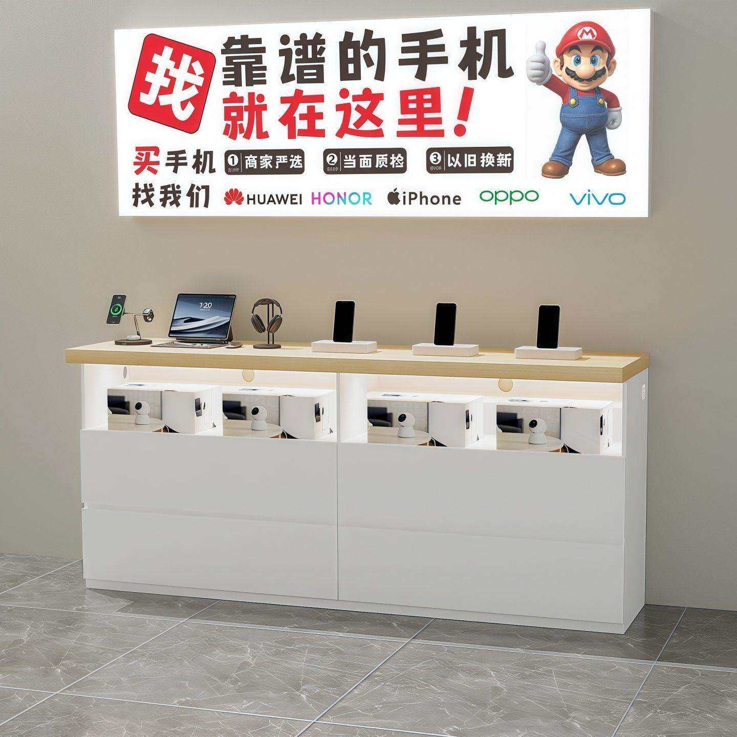 商业/办公家具 新款手机靠墙体验柜台数码电脑中岛展示台边柜智能家居家电展示柜