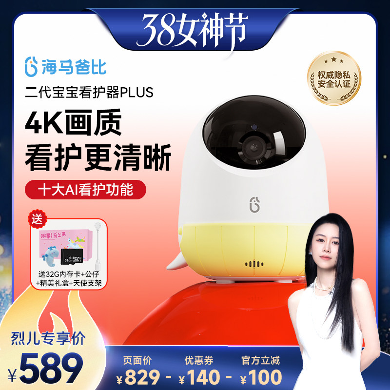 婴童用品 【先加购!24号烈儿0元付定】海马爸比二代Plus婴儿看护器4K超清