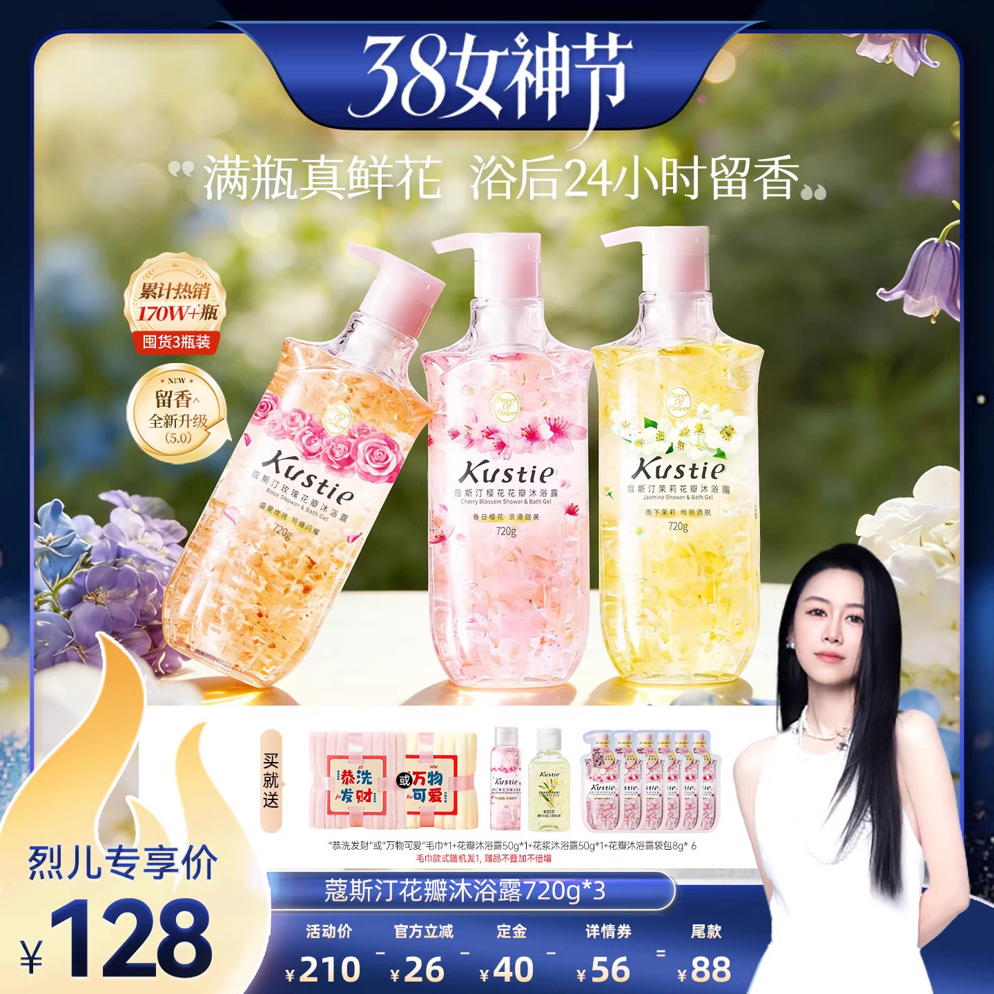洗护清洁剂/卫生巾/纸/香薰 【先加购!24号烈儿0元付定】蔻斯汀花瓣沐浴露持久留香720gX3