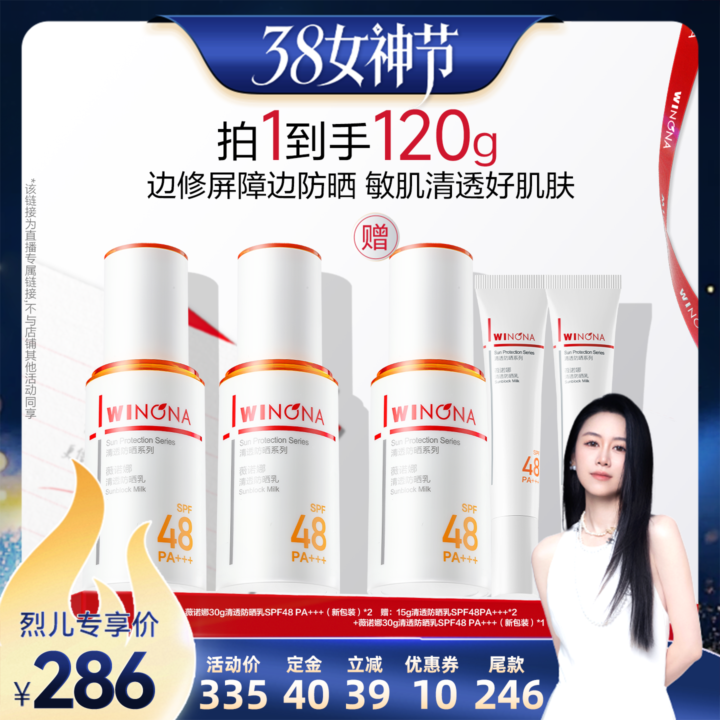 美容护肤/美体/精油 【先加购!24号烈儿0元付定】薇诺娜清透防晒乳30g达播专享