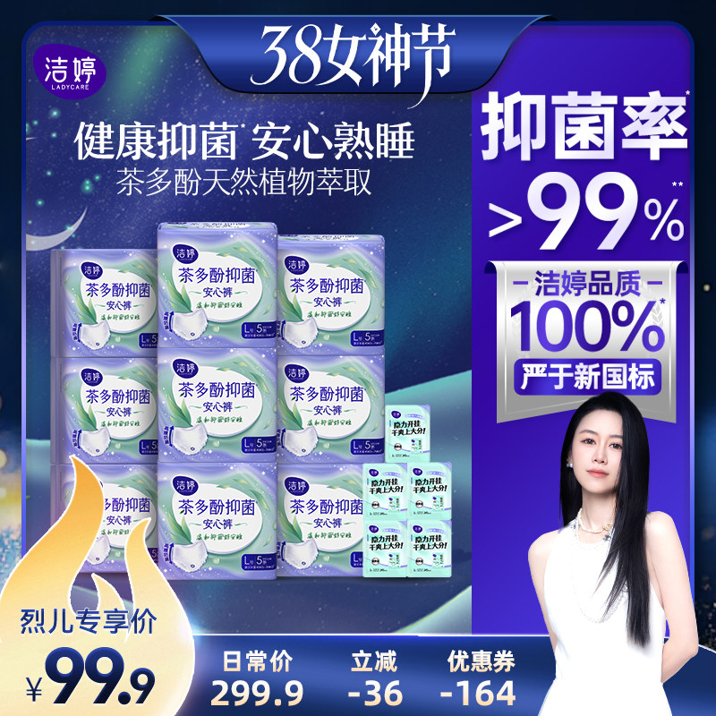 洗护清洁剂/卫生巾/纸/香薰 【先加购!24号烈儿0元付定】洁婷茶多酚抑菌裤夜用防漏安心裤zb