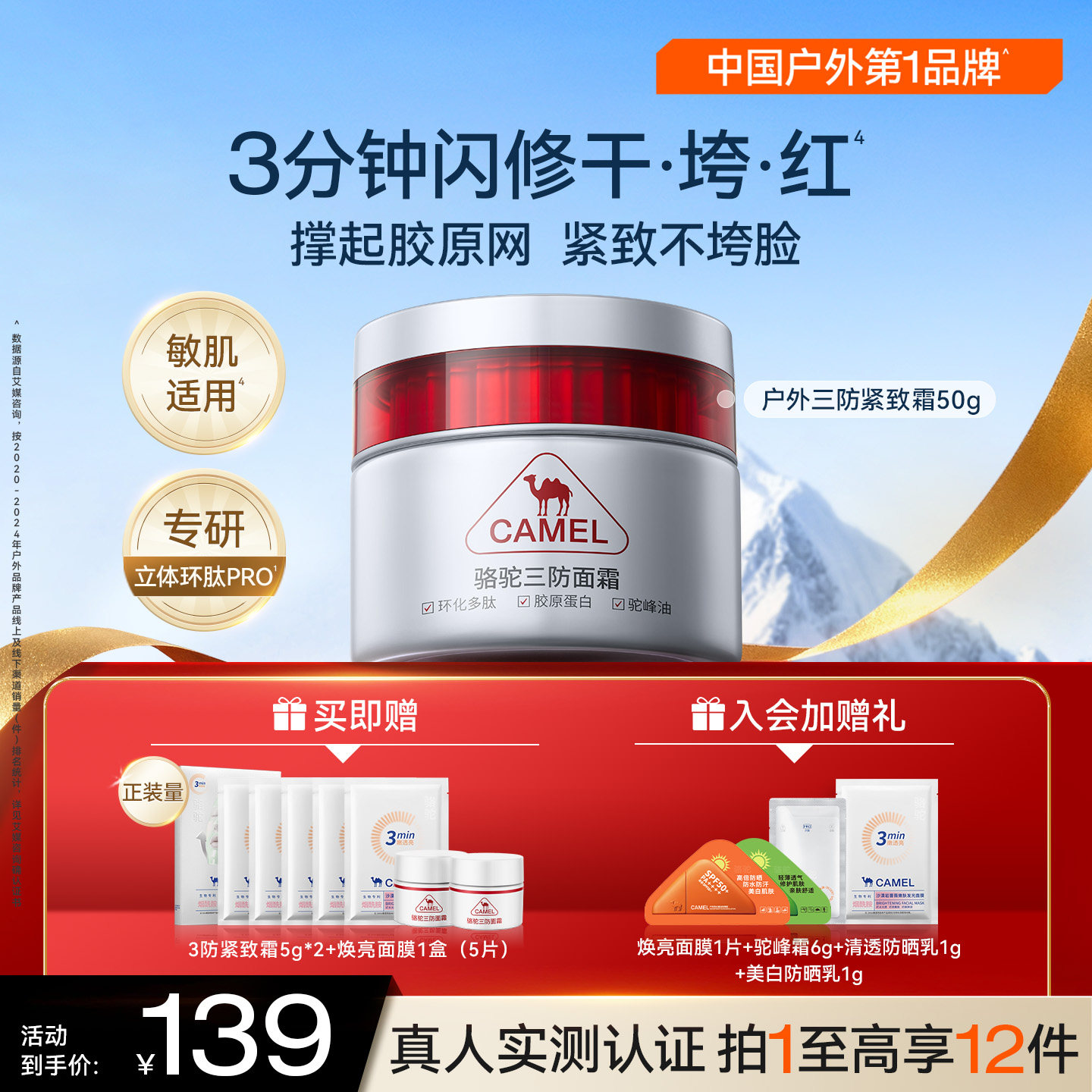 美容护肤/美体/精油 骆驼三防保湿面霜保湿滋润补水干皮修护肌肤屏障受损润肤护脸霜