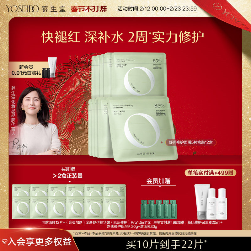 美容护肤/美体/精油 养生堂白桦舒润修护精华面膜敏感肌可用温和保湿舒敏呵护改善红敏