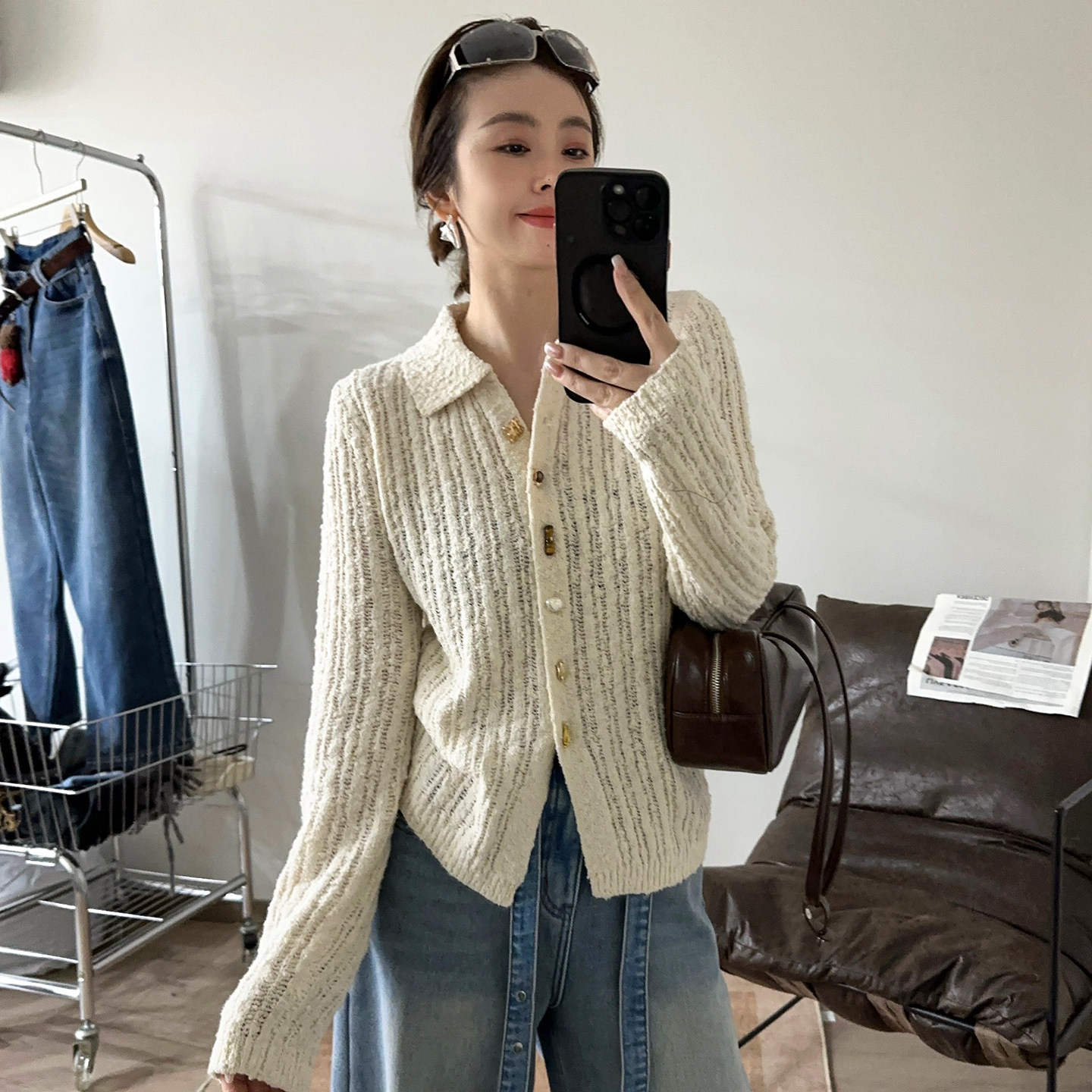 女装/女士精品 肌理感镂空羊毛针织开衫女欧洲站2025冬装新款欧货女装打底毛衣潮