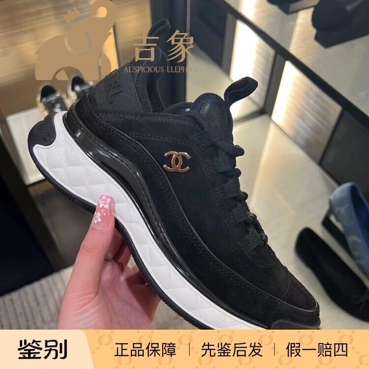 流行男鞋 [现货]Chanel香奈儿2023新款男女同款黑色麂皮系带休闲气垫运动鞋
