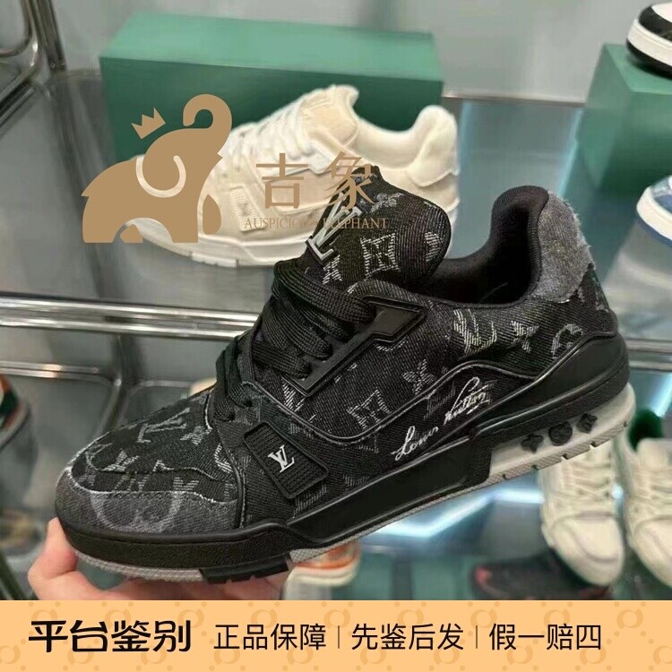 流行男鞋 Lv路易威登2023新款男鞋黑色老花牛仔TRAINER 系带低帮运动鞋板鞋