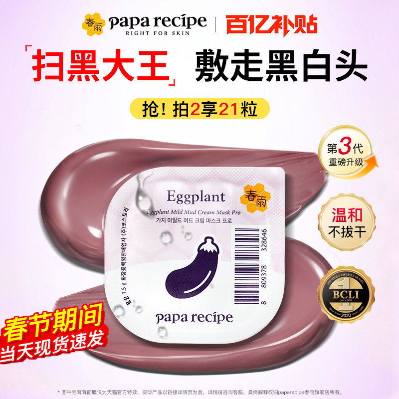 美容护肤/美体/精油 【百亿补贴】韩国原装春雨茄子泥膜涂抹式深层清洁面膜毛孔正品