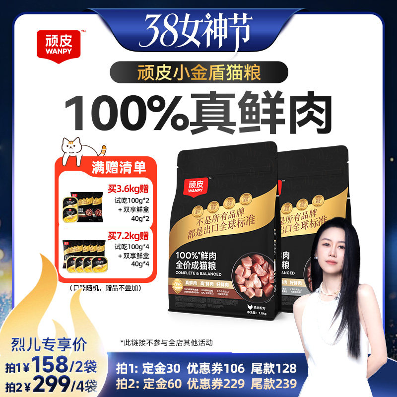 宠物/宠物食品及用品 【先加购!24号烈儿0元付定】顽皮小金盾100%鲜肉无谷成猫粮