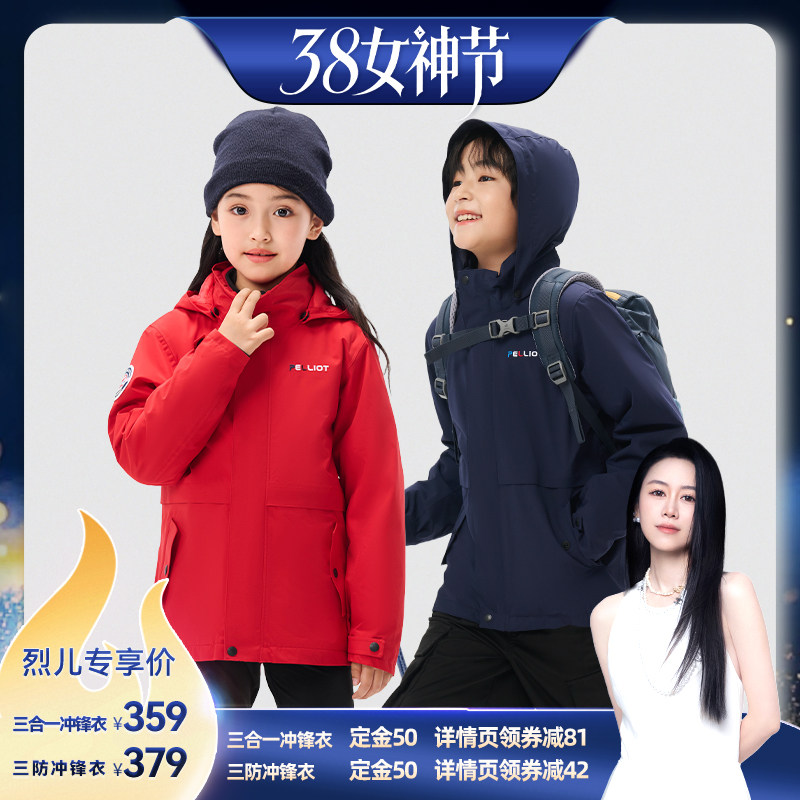 童装/婴儿装/亲子装 【先加购!24号烈儿0元付定】伯希和儿童三合一冲锋衣防风防水外套
