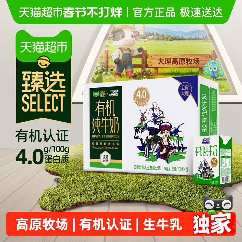 咖啡/麦片/冲饮 臻选Europe-Asia/欧亚4.0有机纯牛奶200g*21盒有机认证