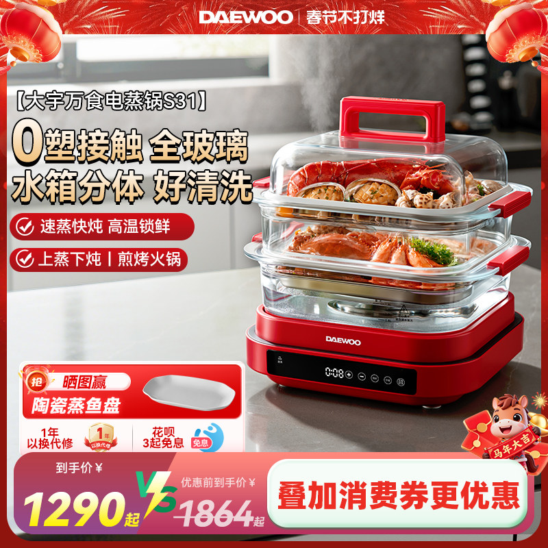 厨房电器 【重磅新品】大宇玻璃电蒸锅陶瓷汽锅蒸炖煮多功能家用多层大容量