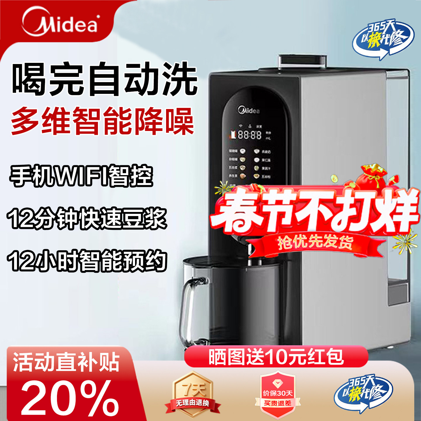 厨房电器 美的破壁机免手洗家用全自动大容量免煮多功能预约豆浆机料理机新