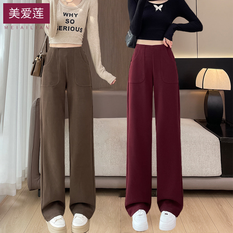 女装/女士精品 美爱莲秋冬新款毛呢窄版阔腿裤女装加绒加厚休闲裤长裤大码呢子裤