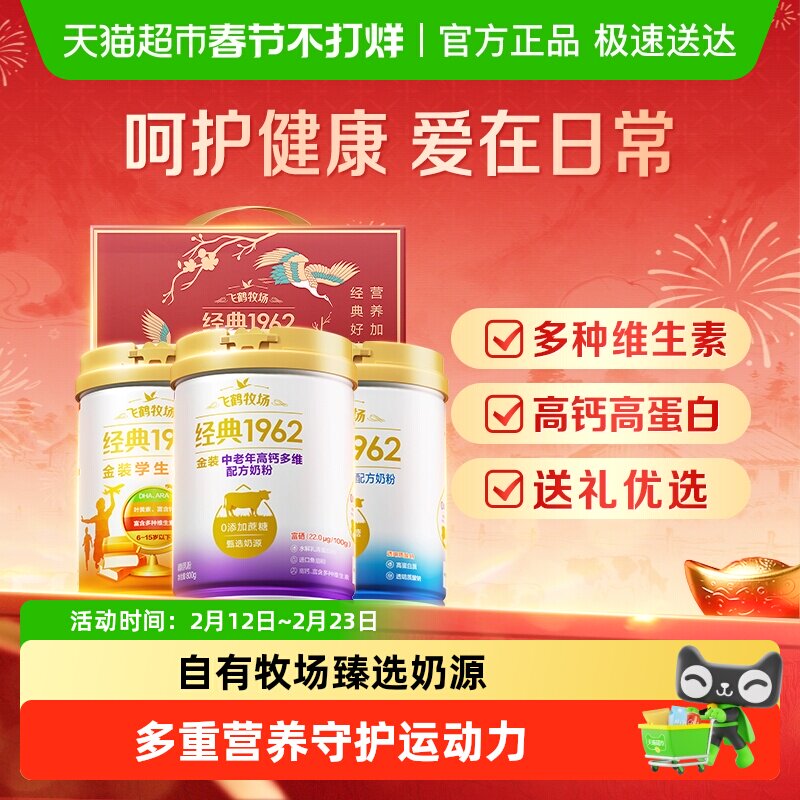 咖啡/麦片/冲饮 【送礼】飞鹤金装1962中老年奶粉高钙进口鱼油礼盒装呵护健康
