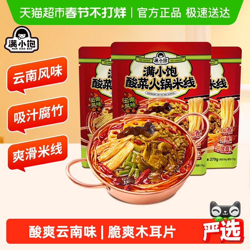 粮油调味/速食/干货/烘焙 满小饱酸菜火锅米线279g*3云南风味爆香爆辣酸爽鲜爽酸辣粉米粉