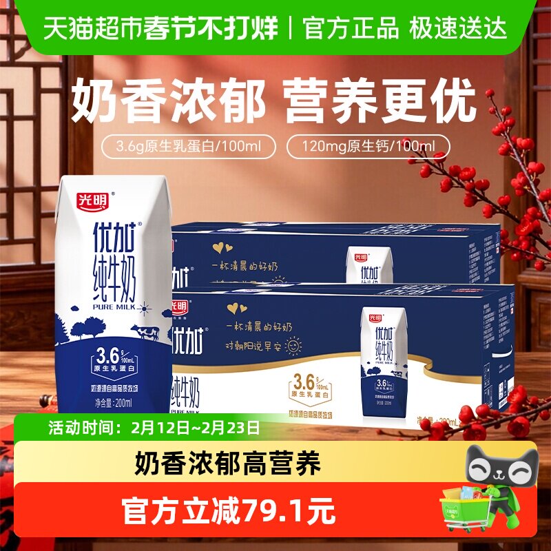 咖啡/麦片/冲饮 光明优加纯牛奶200ml*24盒*2组3.6g乳蛋白钻石装