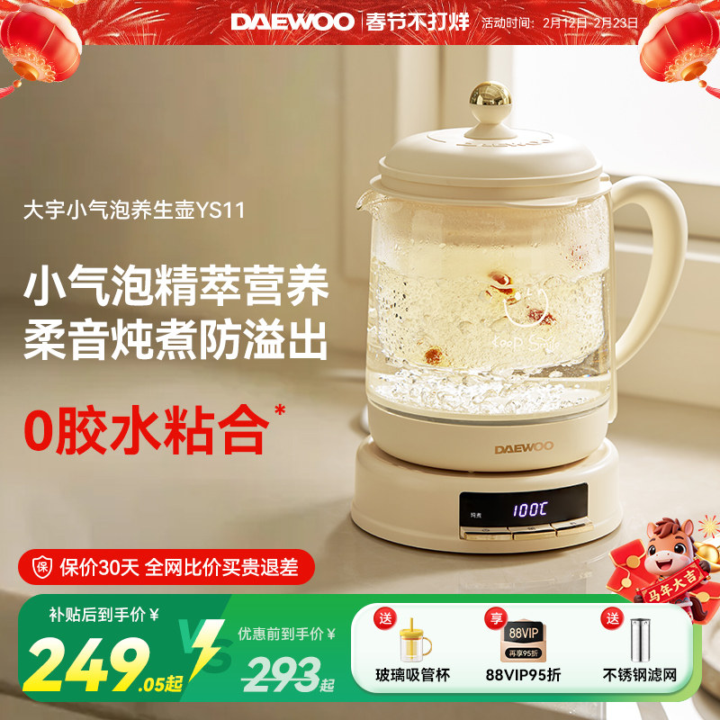 厨房电器 大宇养生壶家用玻璃炖煮一体防糊底防溢出办公室小型轻音烧水壶