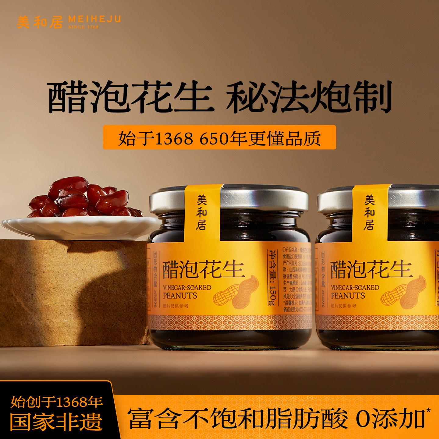 零食/坚果/特产 【美和居-始于1368】醋泡花生即食零食6年老陈醋蜂蜜泡制100gx2瓶