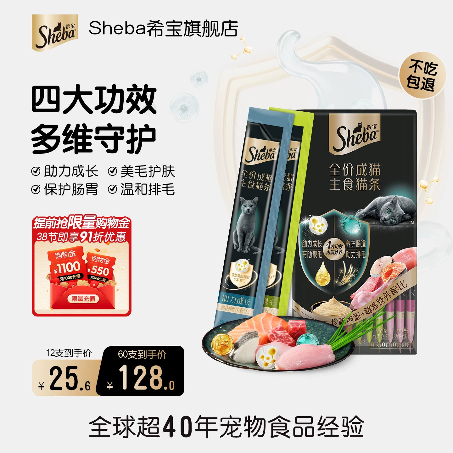宠物/宠物食品及用品 【新品尝鲜】sheba希宝全价主食猫条高肉含量0添加鱼油猫条主食罐