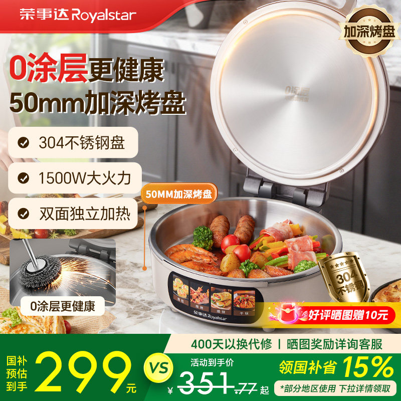 厨房电器 荣事达不锈钢电饼铛家用0涂层双面加热多功能加深电煎锅烙饼新款