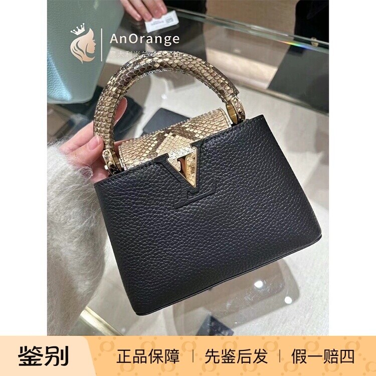 箱包皮具/热销女包/男包 路易威登LV女包Capucines Mini拼接蟒蛇皮手柄手提包黑色N96467