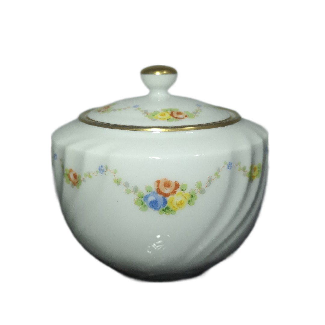 餐饮具 日本大仓陶园手绘粉彩描金茶叶罐微瑕9.9新稀少9*8.5cm特价包邮