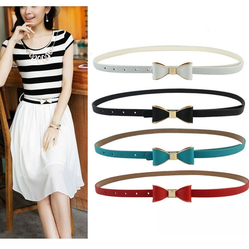 服饰配件/皮带/帽子/围巾 9.9包邮 韩版蝴蝶结装饰细皮带糖果色百搭休闲白色裙子配饰腰带女