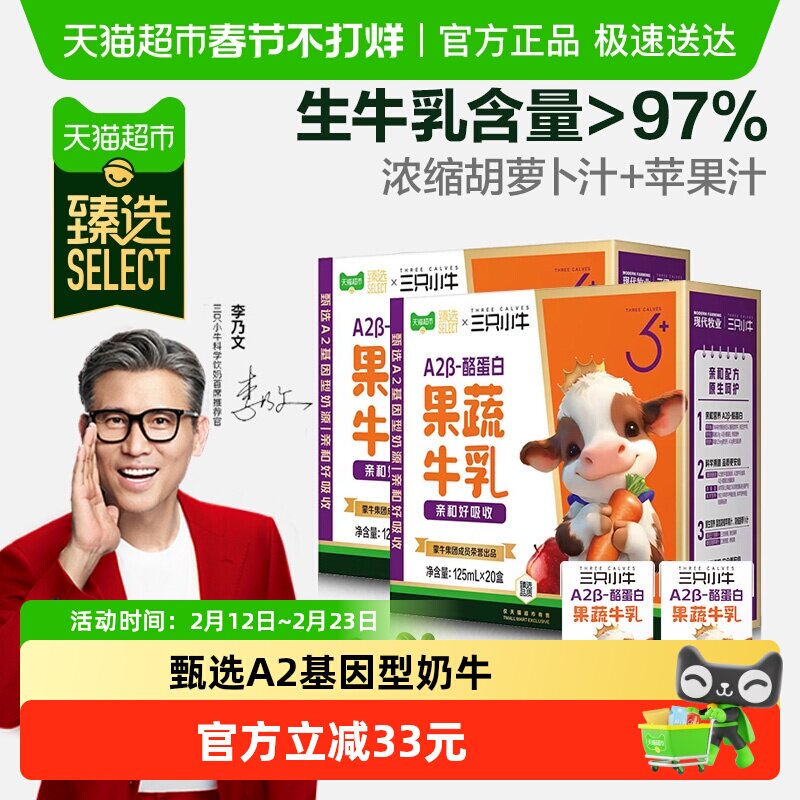 咖啡/麦片/冲饮 李乃文推荐蒙牛三只小牛A2β-酪蛋白儿童果蔬牛奶20盒*2箱送礼