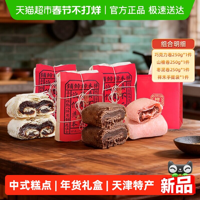 零食/坚果/特产 祥禾饽饽铺枣泥卷酥皮饼传统中式糕点心零食年货送礼天津特产750g