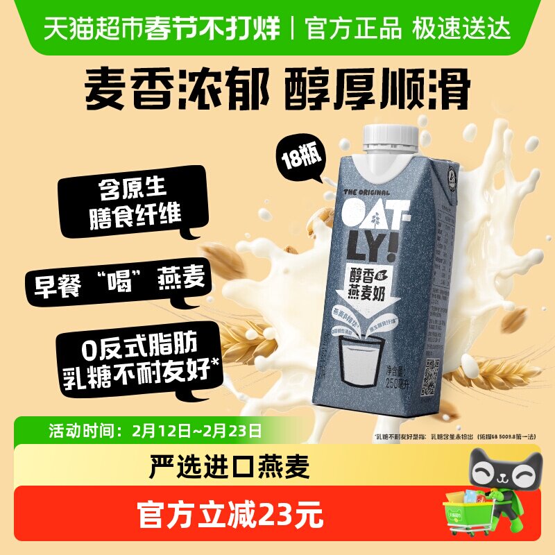 咖啡/麦片/冲饮 OATLY醇香燕麦奶250ML*18瓶箱装早餐奶植物蛋白饮料0乳糖高钙营养