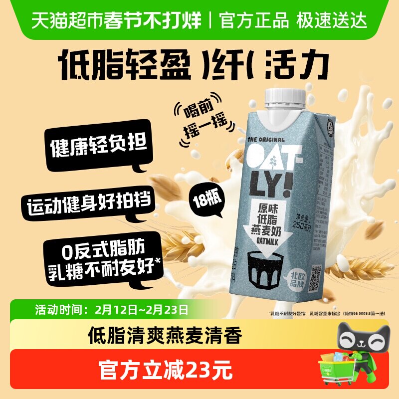 咖啡/麦片/冲饮 OATLY噢麦力原味低脂燕麦奶250ML*18整箱便携早餐奶营养饮料0乳糖