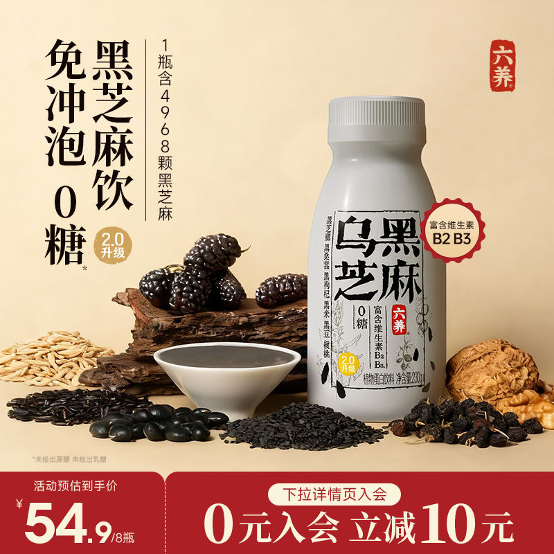 咖啡/麦片/冲饮 六养乌黑芝麻奶饮品0糖五黑芝麻燕麦奶早餐代餐饮品植物蛋白饮料