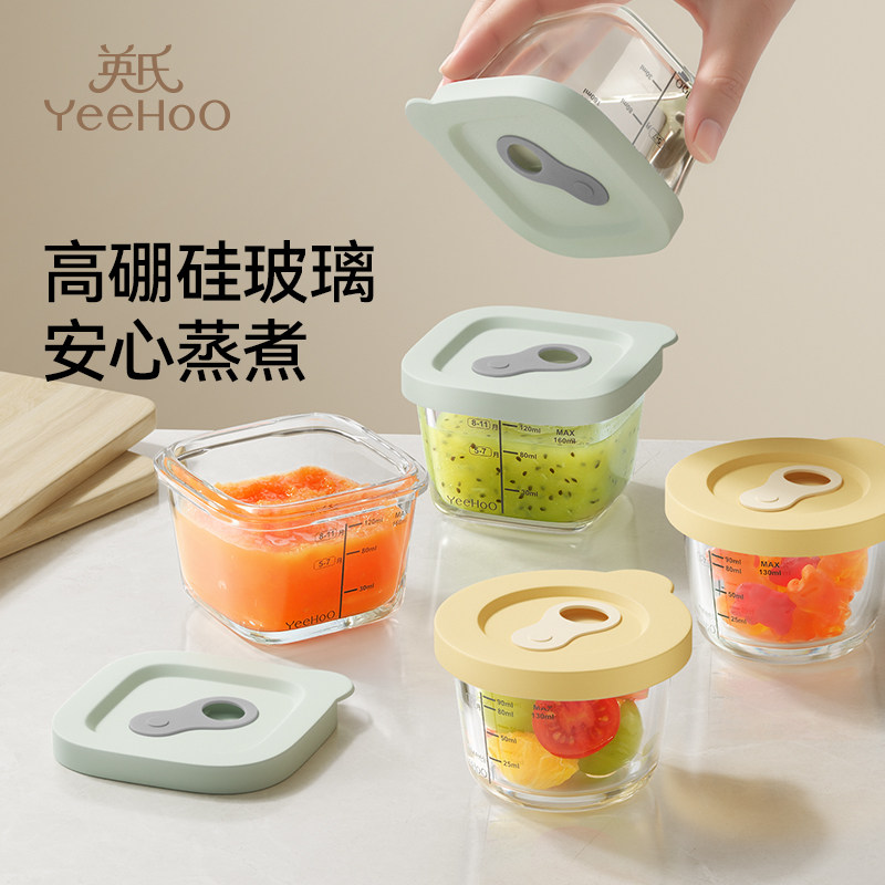 婴童用品 英氏宝宝辅食盒玻璃保鲜储存可蒸煮蛋羹碗专用婴儿辅食碗杯模全套