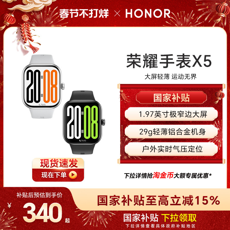 智能设备 【政府补贴15%】荣耀手表X5 智能运动手表 具备窄边大屏 轻薄机身 户外实时气压定位等多功能运动手表