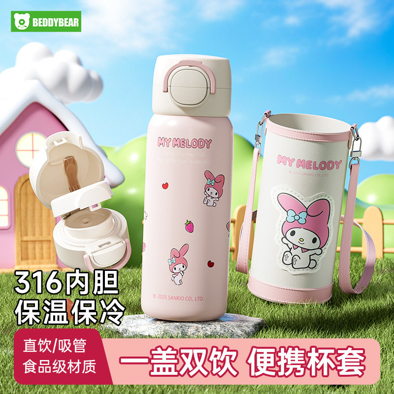 婴童用品 杯具熊美乐蒂儿童双饮保温杯学生上学专用大容量女吸管杯水壶杯子