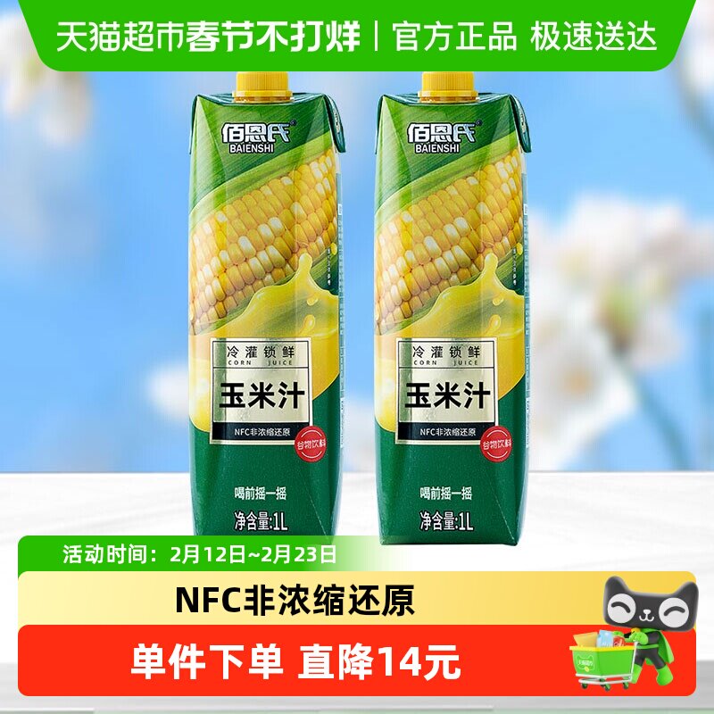 咖啡/麦片/冲饮 佰恩氏水果玉米汁谷物饮料早餐0脂果蔬汁1L*2瓶大瓶聚会分享装