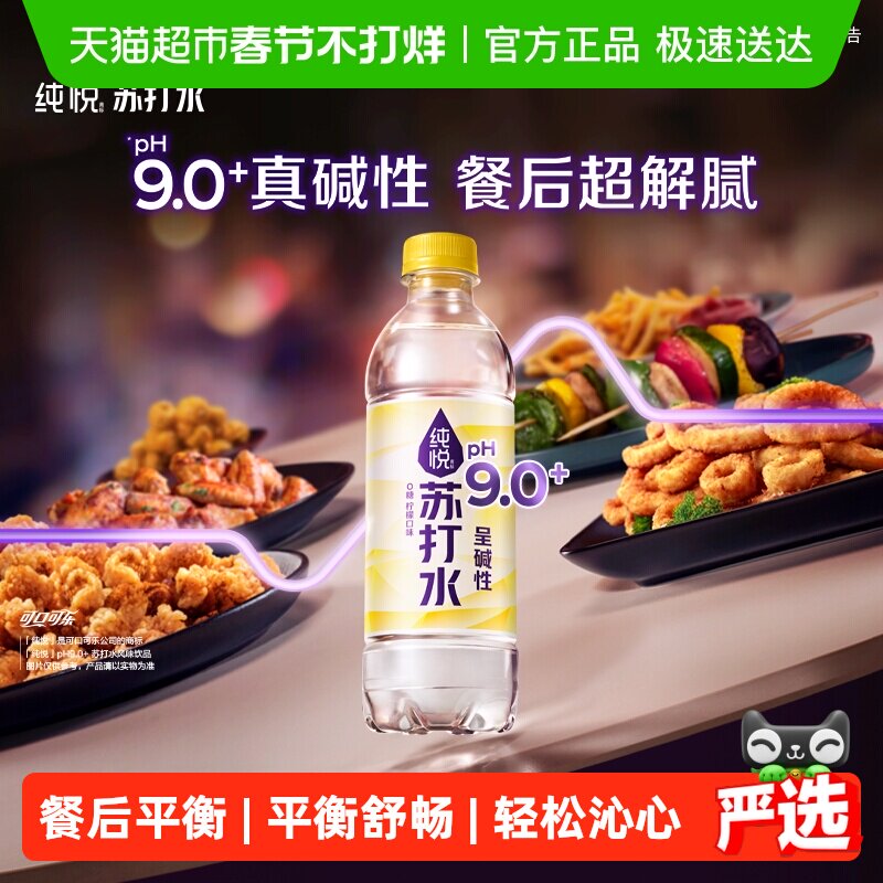 咖啡/麦片/冲饮 可口可乐 纯悦苏打水PH9.0+柠檬味整箱装水饮品0糖0脂