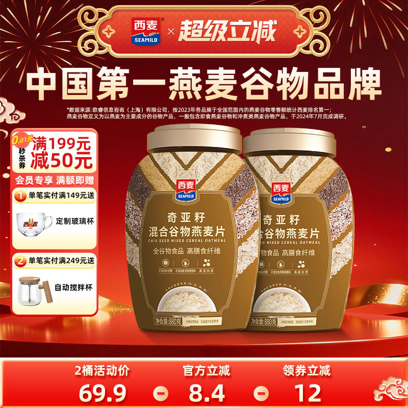 咖啡/麦片/冲饮 西麦奇亚籽混合燕麦片880g罐高蛋白质0添加蔗糖饱腹冲饮营养早餐