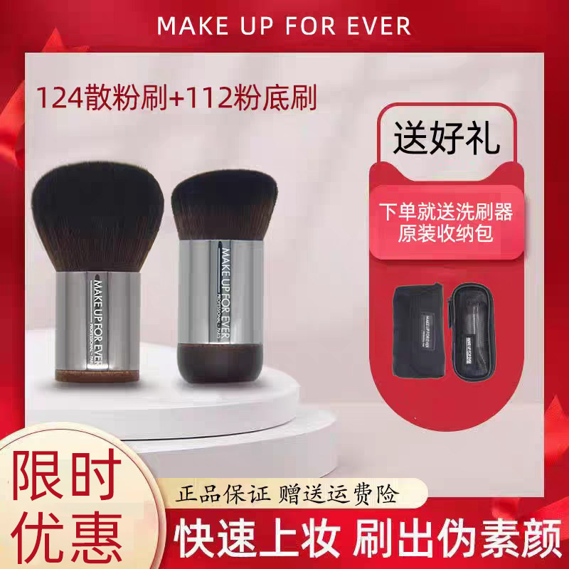 彩妆/香水/美妆工具 makeupforever玫珂菲124蜜粉散粉刷112抛光粉底刷便携组合化妆刷