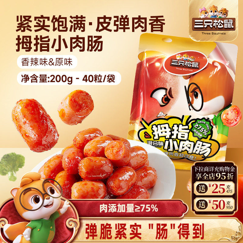零食/坚果/特产 【三只松鼠_拇指肠混合口味】肉肠鸡肉解馋小香肠宿舍零食小吃ss